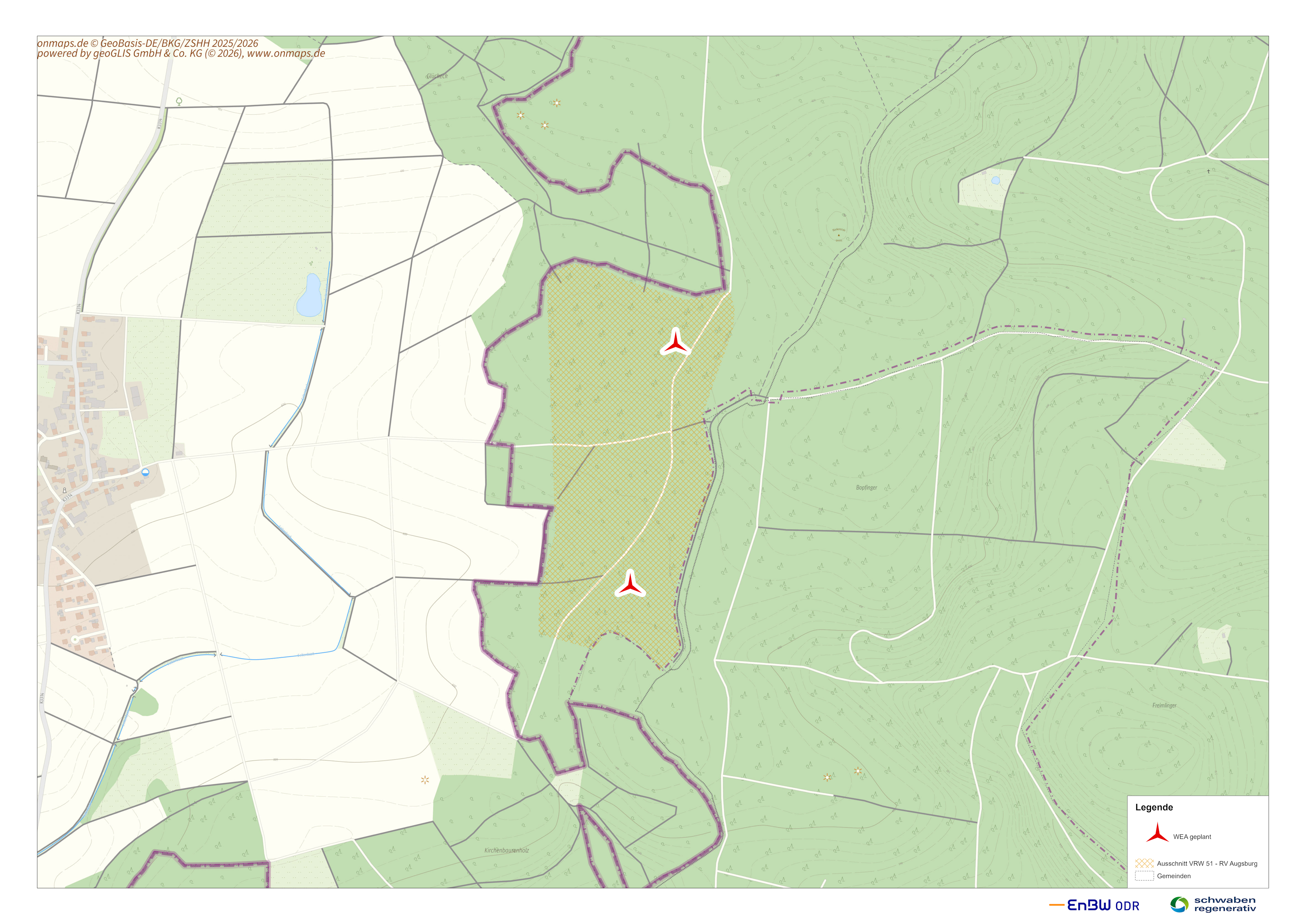 Die Projektfläche befindet sich innerhalb der in Ausweisung befindlichen Vorrangfläche für Windenergie „VRW51” des Regionalverbands Augsburg.