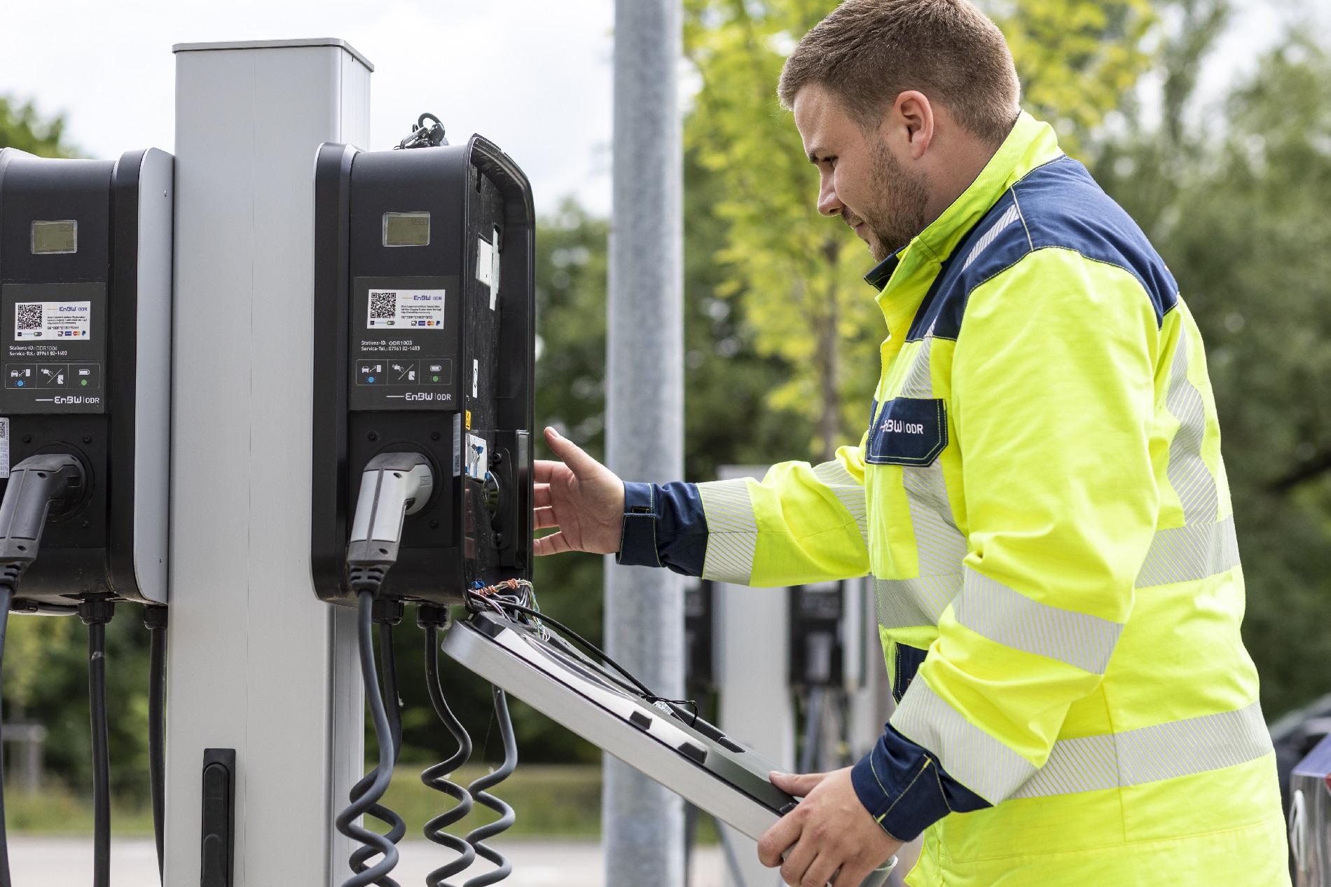 Ladepunkte sind aktuell gefragter denn je. Auch im Firmenladepark können Besucher, Privatfahrzeuge von Mitarbeitenden als auch Pool- und Dienstwägen sauberen Strom laden. (Quelle: EnBW ODR AG)